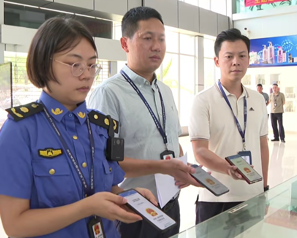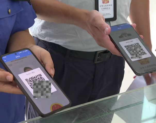 “您好!这是我们的电子行政执法证,您可以扫一扫核实。这一份则是《入企检查通知书》,上面有检查人员信息、检查内容、检查方法以及监督投诉渠道,请查收。”