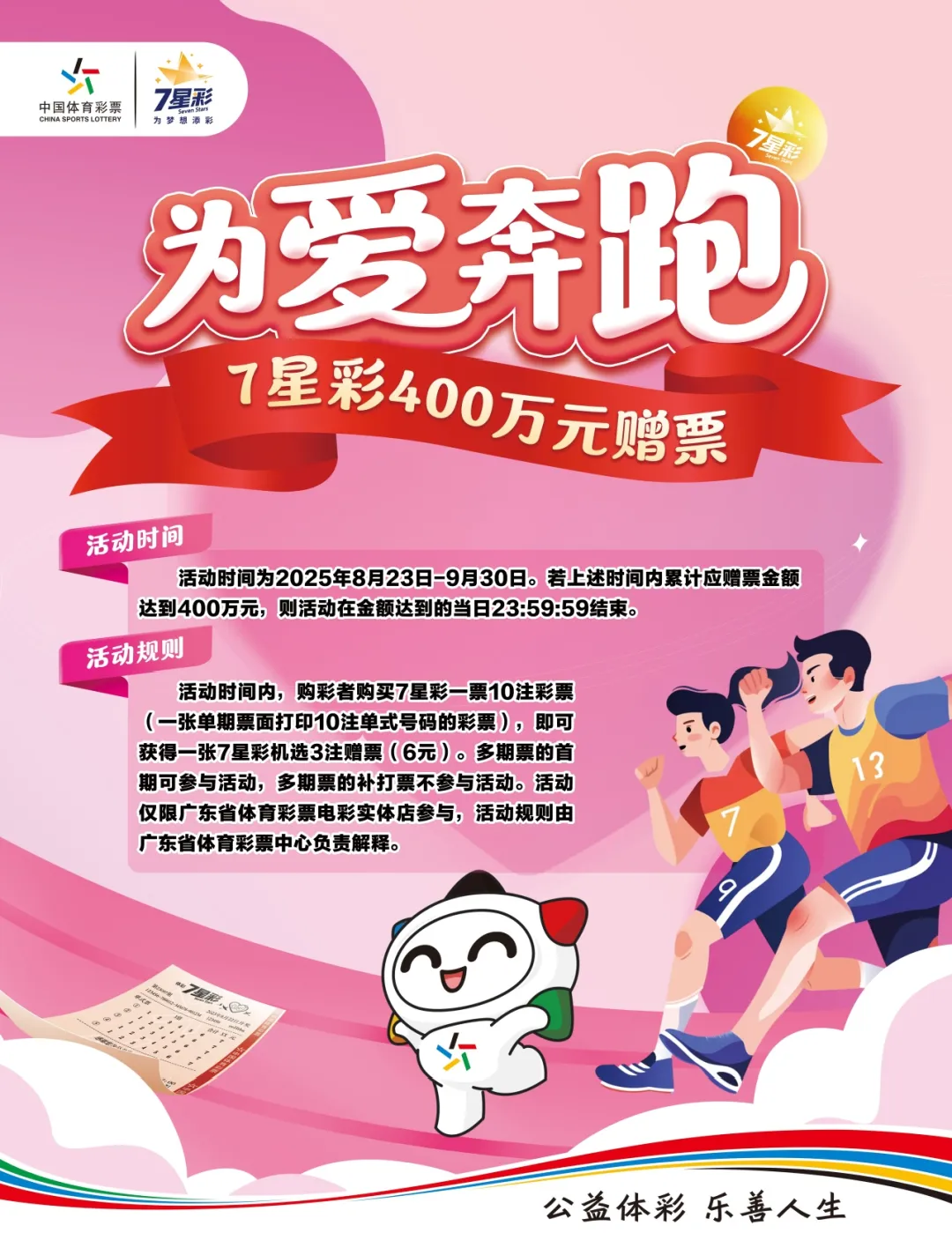 七夕佳节,体彩相伴。为回馈广大购彩者的支持,广东体彩举行 “为爱奔跑 7星彩400万元赠票”活动,为爱奔跑,生活美好!