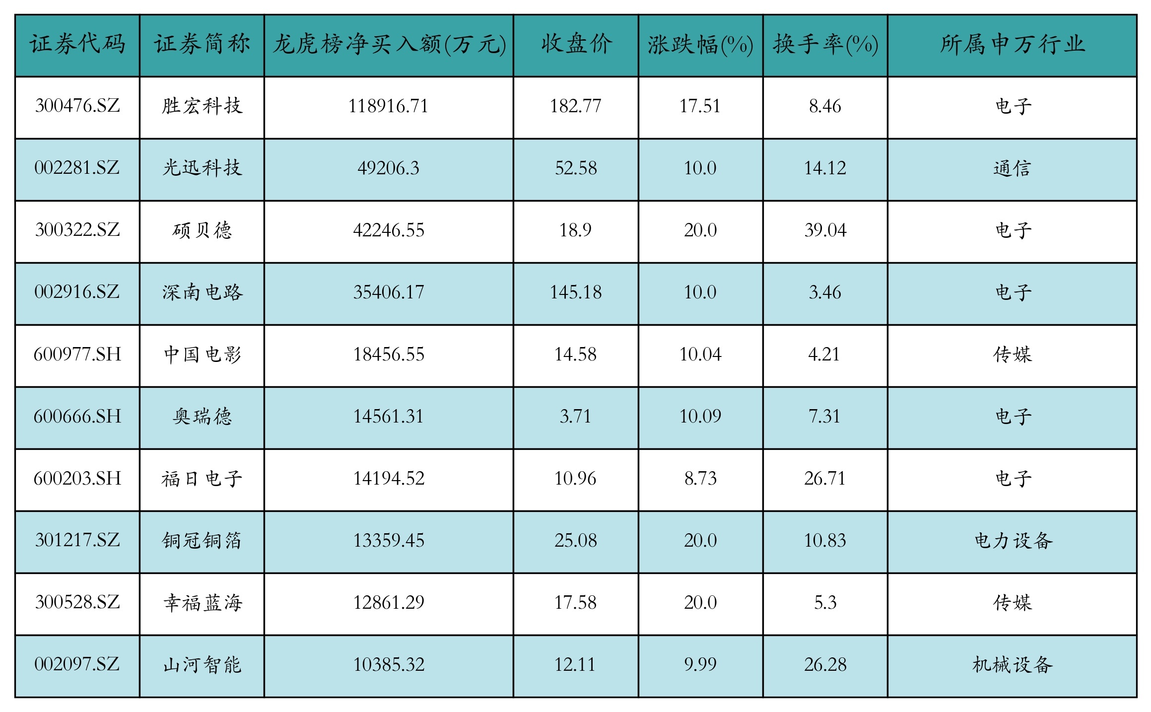 昨日龙虎榜营业部净买入额前10详情见下表: