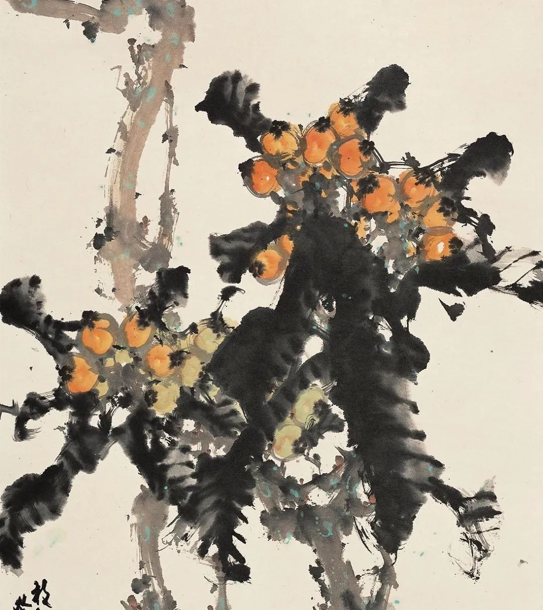 《晚翠》局部 赵少昂 1983年广州艺术博物院藏