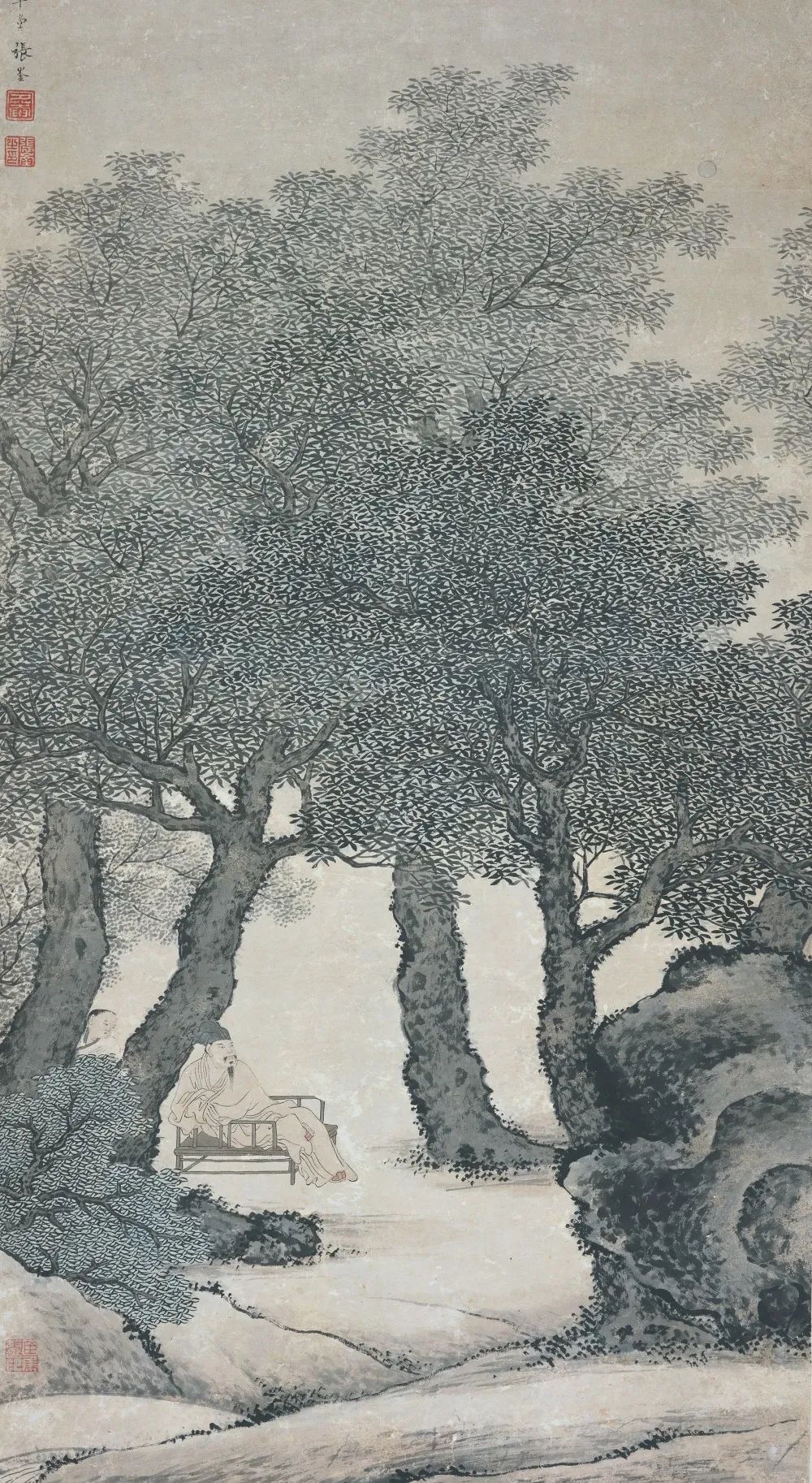 《桂荫纳凉图轴》局部 张崟 清广州艺术博物院藏