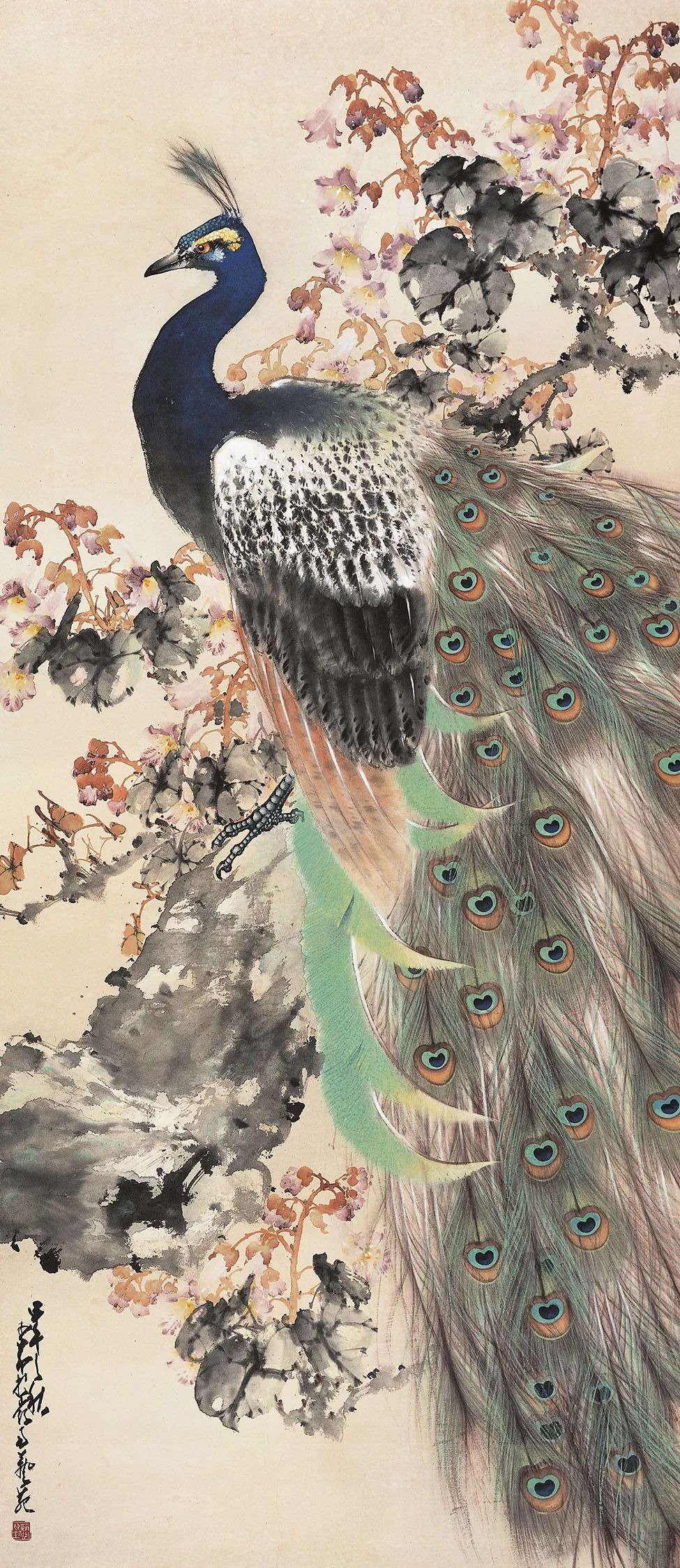 《桐花孔雀》赵少昂 1954年广州艺术博物院藏